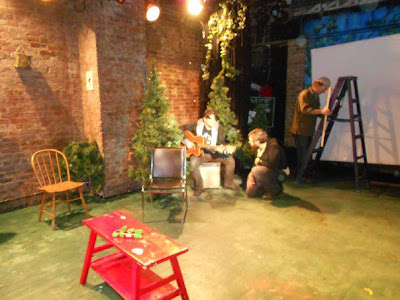 Setting up for the show. There's a play going on in the same space throughout the next few weeks so we had most of their set design out for our event. The play is called and takes place in a "Dog Park" (syncing us pretty heavily with the whole Sirius thing)
